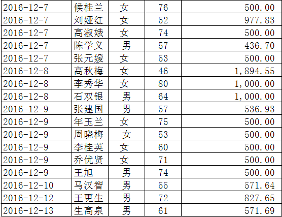 2016年12月份骨病救助明细公示